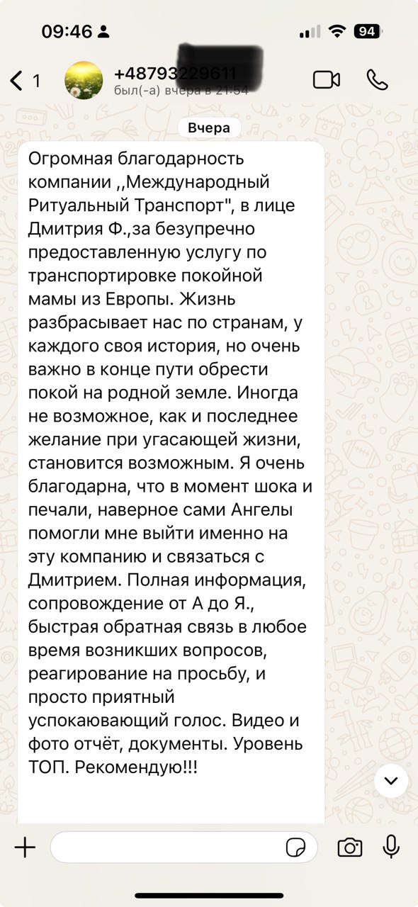 Очень признательна этим специалистам за чуткость и внимательность. Перевозка прошла без единой заминки, что очень важно в такие моменты. Рекомендуем!